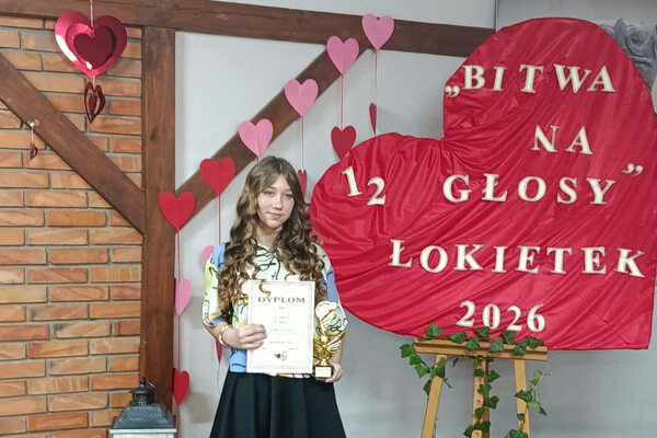 Nasza uczennica, Otylia Pacia z klasy siódmej, zdobyła 3. miejsce w Międzyszkolnym Konkursie Wokalnym ,,Bitwa na głosy" (w kategorii kl. 7- 8) w Liceum Ogólnokształcącym im. Władysława Łokietka w Radziejowie. Serdecznie gratulujemy sukcesu i życzymy kolejnych muzycznych osiągnięć!